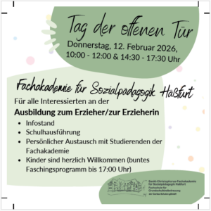 Wir freuen uns, dass Sie sich für die Sankt-Christophorus-Fachakademie für Sozialpädagogik der Caritas-Schulen gGmbH interessieren. Auf den folgenden Seiten finden Sie wichtige Informationen zu unserem Standort in Haßfurt und unseren Ausbildungsangeboten. Außerdem erfahren Sie natürlich, wie Sie sich für eine Ausbildung zum/zur Erzieher/-in bewerben können und finden zudem alle nötigen Formulare zum Download. Wenn Sie Fragen haben, rufen Sie uns gerne an: 09521 952 828 0 oder schreiben Sie uns eine Nachricht über unser Kontaktformular .